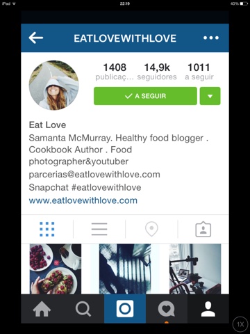 Este é o instagram da Samanta, a autora do blog Eat Love!